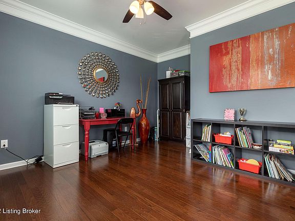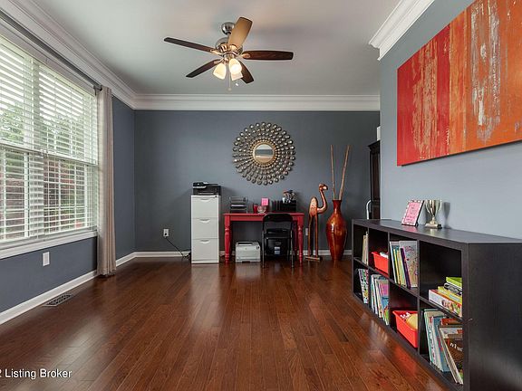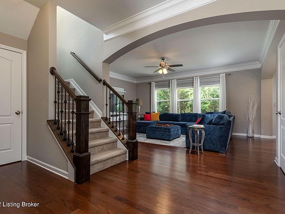 Wonderful 4 BR, 3.5 Bath home featuring an open floor plan, 9' ceilings 1st floor, finished walkout lower level and fenced rear yard backing to greenspace area and treed views! Open foyer features hardwood floors that continue thru a ''Flex Room'' with arched opening! From the foyer there are also direct views into a large Gathering Room! The Gathering Room features a rear wall of windows overlooking rear yard and opens directly to a gourmet style kitchen featuring tons of cabinets, granite countertops, tile backsplash, center-island, stainless steel appliances, pantry and breakfast area with doors to a deck! There is also a 1.2 bath that completes the 1st floor! A turned staircase with accent window leads to a 2nd level featuring a large open loft space with double windows, the Primar BR which is king sized features rear windows and a private bath with double vanities, walk-in shower and walk-in closet! There are 2 additional BR's, 2nd full bath and laundry room that complete the 2nd level! The walkout lower level adds additional finished entertainment space featuring a game area with doors to a patio and the fenced rear yard, a media space and 4th BR and 3rd full bath! Awesome home and upgrades, great location and 2 car garage!