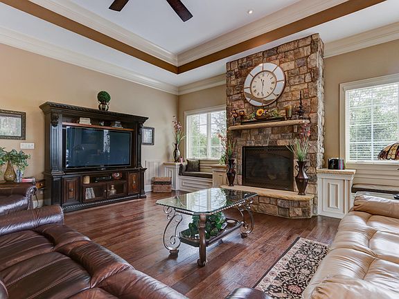 A beautiful custom in the prestigious Farm At Willow Creek in a private setting. This 3100 sqf 4 beds 3.5 bath masterpiece nested on a .53 acres corner lot overlooking the mystic willow creek lake and fountain. Enter the house through a grand gallery with arched door ways and insets.Extensive millwork custom cabinets all with granite counter tops are a must to see.main level offers gigantic great room with over 12' ceilings opening into huge gourmet kitchen with premium SS appls,walking pantry,continuing on into dining room with trey ceiling,master bed with trey ceilings, master guest suite with tile shower.The second level offers the 3rd and 4th/bonus bedrooms and a full bath.the cover porch with Trex flooring, beaded ceiling with fans over looking the magnificent huge 10 persons hot tub