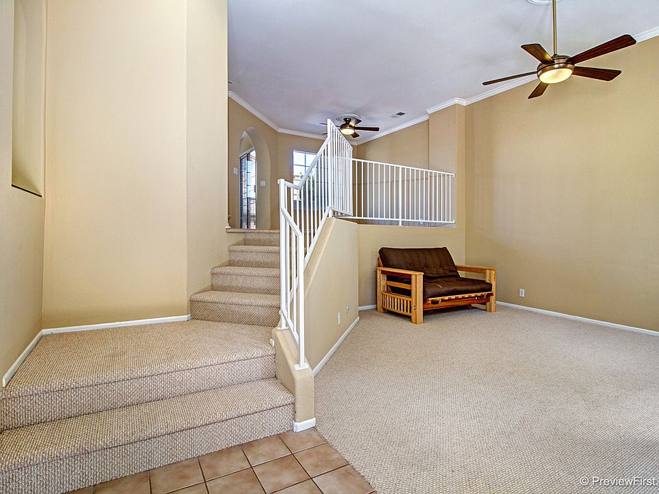 Newly Installed Carpet in Living Room, Back Bdrm & All Stairs + New Laminate in Dining Rm; Soaring Ceilings, Crown Molding and Spacious Rooms; Upgraded Stainless Appliances; Freshly Painted Throughout; New Modern Ceiling Fans in Bedrooms, Dining Rm & Living Rm; Kitchen Opens to Spacious Covered Patio, Perfect for Grilling and Outside Dining; Quiet, Serene Location in the Complex; HUGE Amount of Storage Space in Garage; Full Sized Washer & Dryer Upstairs; Top Rated Schools