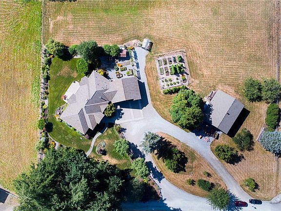 Stunning Custom Rambler on over 2.3 acres. Hand scraped hickory floors, granite counter tops, SS appls, walk-in pantry. Open concept living, over sized office, private master suite w/large walk-in closet, 5 piece bath w/jetted tub. Well developed, fenced garden area, raised beds, Fruit Trees, Raspberries, Blueberries, Grapes, Greenhouse. Meticulously maintained flower beds w/timed irrigation. 42x24 Dream Shop, heated w/bathroom, RV hookup/water/power/ shop has separate septic-potential for ADU