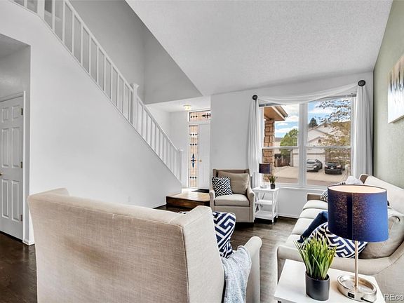 Fantastic 2-story, updated, turn-key home in Littleton's desirable Westgold Meadows neighborhood! As you come into the tiled front entry, your eyes will be drawn to the vaulted ceilings and windows in the Living Room and Dining Room. Enjoy the beauty of the newly refinished hardwood floors that span the entire first level. The well-appointed kitchen has granite countertops, stainless steel appliances, plenty of cabinets and a charming bay window! The family room is just off of the kitchen, for enjoying a cozy evening in front of the gas fireplace or for great entertaining. Expand the party by going out to your covered deck with fabricated stone pillars that opens to your large, oversized corner lot. Don't miss the heated two car garage. Upstairs enjoy the Master Bedroom with ensuite 5 piece Master Bath and ample walk-in Closet. There's lots of natural light in the two bedrooms that share the full, hall bathroom. The finished basement is great for entertaining with a full wet bar and a convenient 3/4 bath. Easy access C470. House is air conditioned and the interior was recently painted. You won't find a cleaner house.