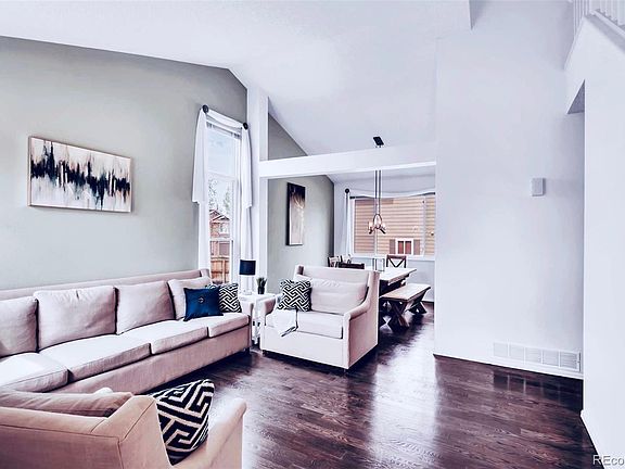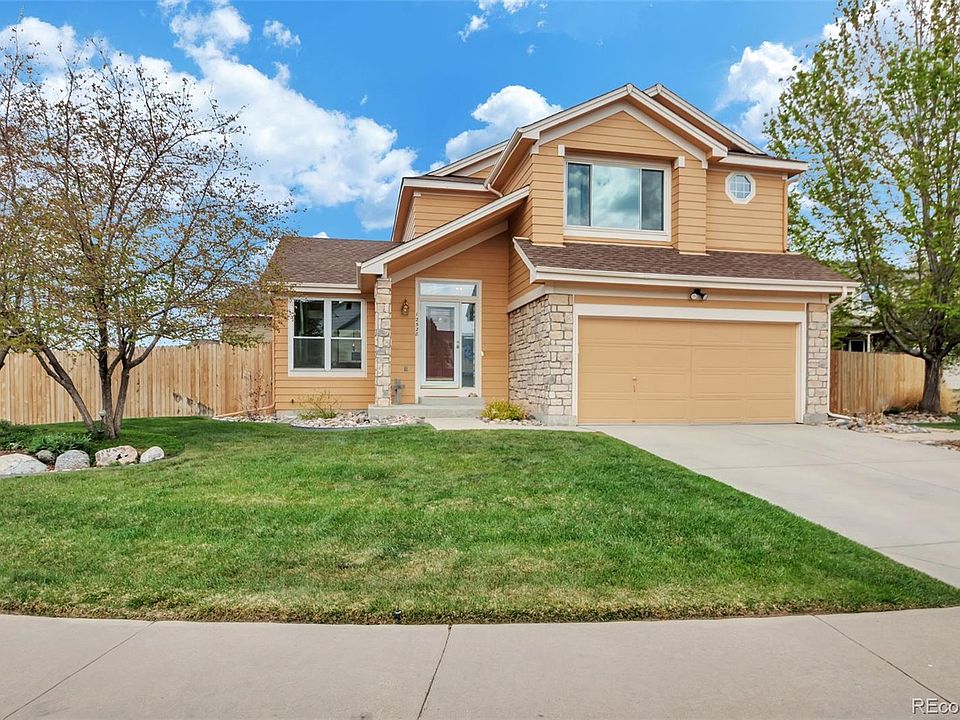 Fantastic 2-story, updated, turn-key home in Littleton's desirable Westgold Meadows neighborhood! As you come into the tiled front entry, your eyes will be drawn to the vaulted ceilings and windows in the Living Room and Dining Room. Enjoy the beauty of the newly refinished hardwood floors that span the entire first level. The well-appointed kitchen has granite countertops, stainless steel appliances, plenty of cabinets and a charming bay window! The family room is just off of the kitchen, for enjoying a cozy evening in front of the gas fireplace or for great entertaining. Expand the party by going out to your covered deck with fabricated stone pillars that opens to your large, oversized corner lot. Don't miss the heated two car garage. Upstairs enjoy the Master Bedroom with ensuite 5 piece Master Bath and ample walk-in Closet. There's lots of natural light in the two bedrooms that share the full, hall bathroom. The finished basement is great for entertaining with a full wet bar and a convenient 3/4 bath. Easy access C470. House is air conditioned and the interior was recently painted. You won't find a cleaner house.