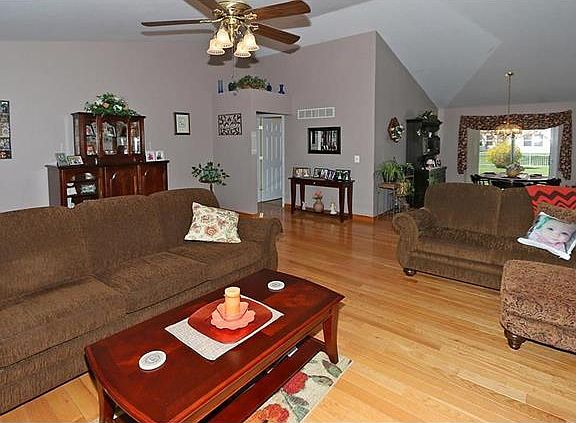 Ranch home with so much to offer* Exterior offers Partial brick front* Vinyl siding* Enclosed soffits & fascia* Covered front porch* Grids on front windows* 2 car garage with keyless entry* Newer roof (2014)* Full view storm doors* Fenced yard & a 12 x 10 Covered patio* Interior offers 3 bedrooms & 2 baths* Vaulted ceilings* Gas fireplace* Ceiling fans with light kits* Hardwood floors (great room, brkfst room, hall & all bedrooms)* White six panel doors* Kitchen with oak cabinets, stainless steel appliances (2011), built in microwave, smooth top stove & tile backsplash* Master bedroom with his & her closets* Plant shelves* Main floor laundry room* Newer windows throughout home* Gas furnace & hot water heater* This one is a pleasure to show but no showings until Saturday 4-2-16* Covered Porch, Patio, Smoke Alarm/Detec