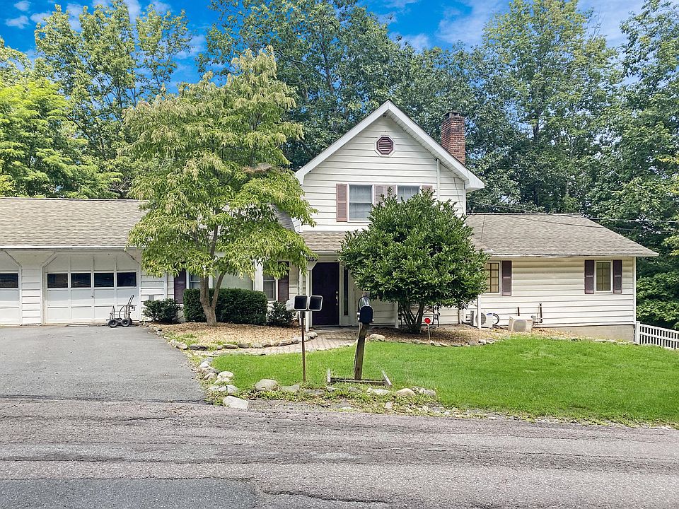Unique 2747 sq. ft home with 4 bedrooms 1 full bath; 2- 3/4 baths, 2 car garage; 2.087 acres. 2500 sq. ft deck. Full basement/mechanical room. Hot water baseboard. Year round babbling brook, 10x20 shed, 6 split AC units 4 are with heat Pumps. Screened in porch. Scenic views of Delaware River and mountains from property.