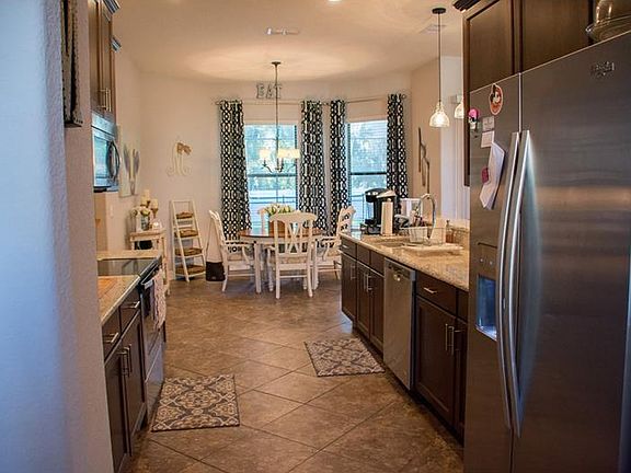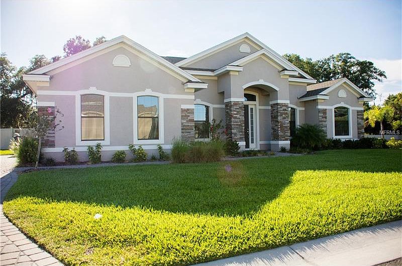 SPACIOUS 4 BEDROOM, 3 BATHROOM POOL HOME WITH A FULLY FENCED BACKYARD AND PREMIUM UPGRADES IN THE GATED COMMUNITY OF DEVIN OAKS. Construction completed less than a year ago. The kitchen includes 42-inch cabinets with crown molding, a breakfast bar, eat-in nook, recessed lighting and an adjoining mudroom with closet pantry. The luxurious master suite features double tray ceilings, crown molding, an oversized 102 square foot walk-in closet and a spacious bath with granite countertops, his and her sinks and a separate garden tub and walk-in shower. There is another suite on the other side of the home that has its own full bathroom with access to the pool area. Additional rooms include a formal dining room, huge great room, and a large inside utility room. Some additional features of the home include 10 foot ceilings, 5 inch baseboards, and rounded corners throughout, oversized 8 foot sliding glass doors to the pool area, side entry garage, and an irrigation system. The screened-in pool area features a large covered lanai, prewired speaker system, child safety fence and access to a pool bath. Conveniently located near major roadways, shopping, and entertainment.