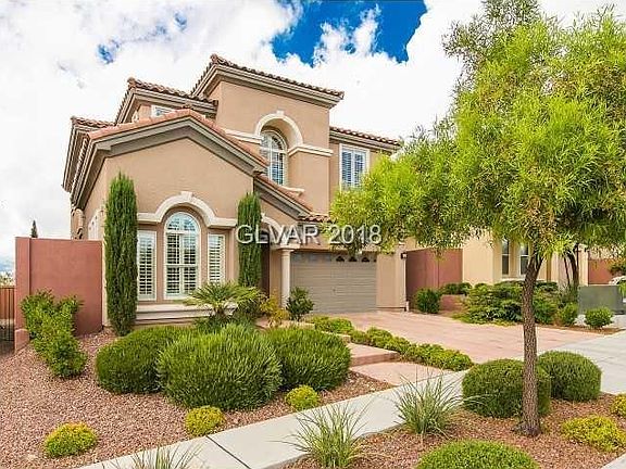 Summerlin 2-Story Home features: First Floor: Bedroom, Powder Room, Den, Formal Dining Room Open plan Family Room and Kitchen with Granite Countertops. 2nd Floor Features: Loft (used as living room), Guest Bedroom, Full Guest Bathroom, Separate Laundry Room with Sink and Storage. Master Bedroom with Sitting Area and En-suite Full Bathroom with Stone Finishes. 2-Car Garage, Landscaped Backyard. Gated Community.
