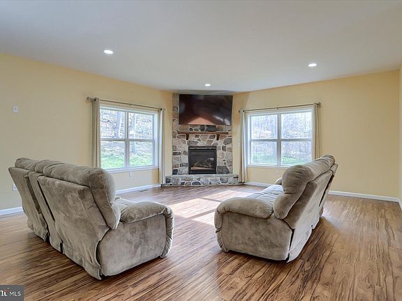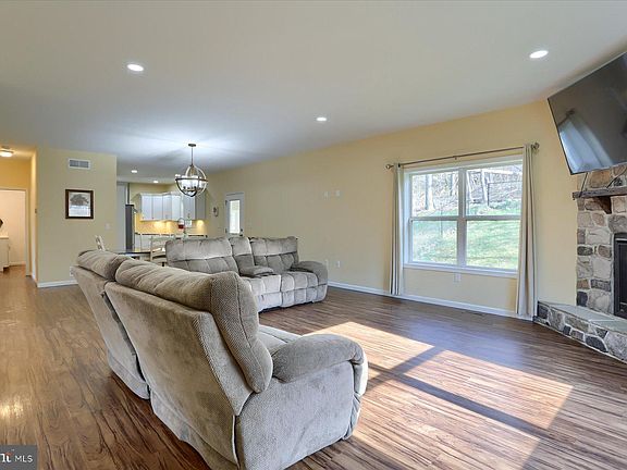 You will love coming home to this picturesque property situated at the foot of White Rock Acres in the sought after Cumberland Valley School District on nearly a half acre! During your drive through the woods to reach this property, you can expect wildlife and immediate tranquility. This nearly new (2019) 4 bed, 2.5 bath bi-level boasts 9 ft ceilings throughout!! LVP throughout for easy cleaning! A very wide, welcoming entranceway leads you to the main living area where you will find an open concept floor plan. The kitchen includes stainless steel appliances, granite countertops, a built-in microwave and oven, a flat top stove, and a walk-in pantry. The open dining room leads to the family room, which features a beautiful fireplace; all creating the perfect entertaining space! Off the family room is a separate room used for a home office that can also be a great sitting area, playroom, or craft area. Additionally, there is a sunroom off the main living space that you can sit to enjoy the wildlife and take in all the nature that surrounds you! The upper level has 2 bedrooms and 1 full bath, which includes a double bowl vanity. As you head downstairs, you will find the master retreat with 2 walk-in closets and an amazing bathroom! The master bath has HEATED ceramic tile floors, a soaking tub, walk-in stone shower, and double bowl vanity sink. Talk about never wanting to leave this space!! The lower level has an additional family room, bedroom, and a half bath. Whether you have dogs or not, the dog bath located in the laundry room off the garage makes the perfect place to wash off your boots as you come inside! This property has a black vinyl coated chain link fence securing part of the land, with additional open space outside of fenced in area. METAL ROOF! To see this property is to love it! Don't miss your chance to own a piece of paradise in the woods.