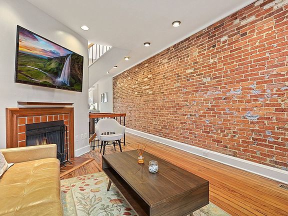 This is a charming 3-level row home in Capitol Hill. Step inside and be greeted by the grace of the brick hearth fireplace and hardwood floors. The main level features a spacious living room with an exposed brick wall, a separate dining area, and a powder room. The renovated gourmet kitchen boasts self-closing solid wood cabinets, quartz countertops, gas cooking, stainless steel appliances, and a wine refrigerator. From the kitchen, walk out to the private patio, which is perfect for relaxing, grilling, or summer entertaining. The skylight in the hallway pours in natural light. Both bedrooms on the upper level are sunlit and roomy. The renovated hall bath is spacious and has a second skylight. The bonus feature is the finished lower level with a rear exit which could provide great rental income and host a recreation area, full bathroom, laundry closet, and a den/3rd bedroom with a terrific storage closet. Walking distance to the Metro, Trader Joes, Harris Teeter, Barracks Row, Eastern Market, Navy Yard, and The Roost.