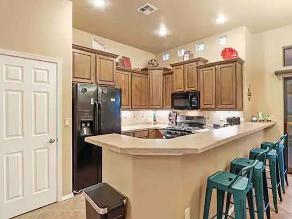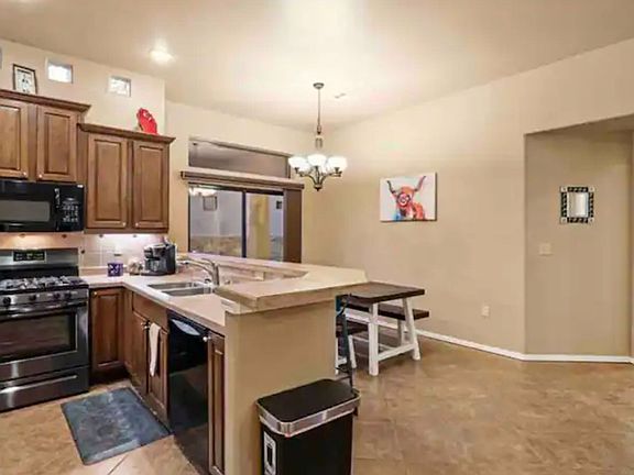 4 bedroom, 2 bathroom home, with two covered patios and a 3 car garage. Split bedroom floor plan with custom tile throughout. Master bedroom has a large walk in closet & jetted tub in the master bathroom. Open living and dining room areas great for entertaining. New roof and AC was installed in the fall of 2015.