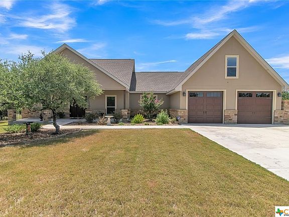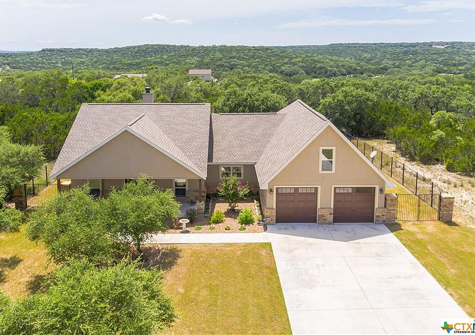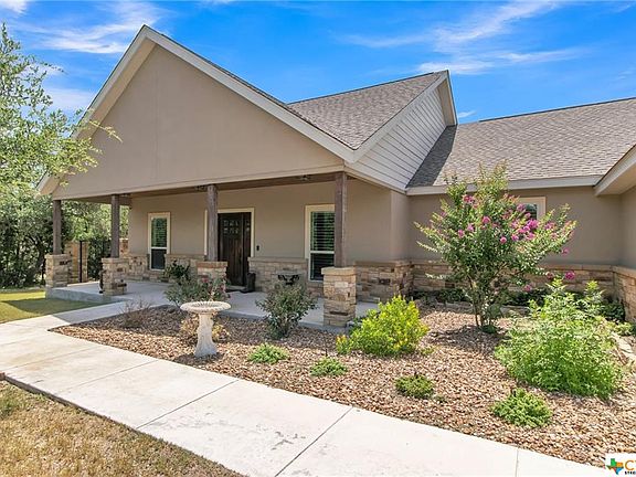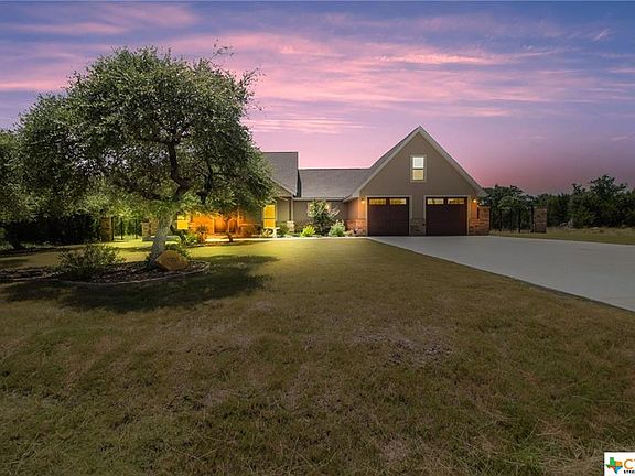 Beautiful 3 Bedroom 2.5 Bath Wolff Custom Home on a landscaped half acre lot. Interior features 2124' of living space with Tile and Carpet Flooring, Crown Molding, Coffered Ceilings, Double Hung Windows, Recessed Lighting, and Plantation Blinds/Shutters. Kitchen Boasts Custom Cabinets with soft close drawers, Granite Countertops and Stainless Steel Appliances. Owners Suite with 2 Closets, Double Vanity, Oversized Jetted Tub and Separate Shower Private Backyard with over 630' of Covered Patio with Hillcountry views, 16' x 24' Outbuilding/shed for storage with electricity. Irrigation System for entire yard. Only a few minutes to Canyon Lake, and short commute to San Marcos or New Braunfels.