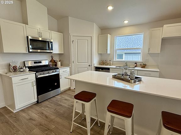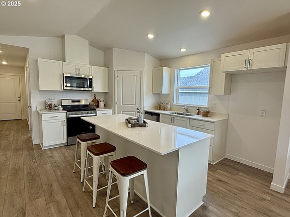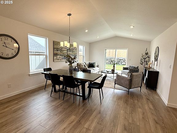 Welcome to the Dahlia at View Wood Estates, a new community in Hermiston, OR, built by award-winning Woodhill Homes. These quality-crafted homes offer modern design, energy efficiency, and comfort throughout. Enjoy covered front porches, open-concept great rooms with vaulted ceilings, and beautiful laminate flooring in the main living areas. The kitchens are designed for both style and function, featuring sleek quartz composite countertops, uninterrupted center islands with ample space for meal prep or entertaining, dedicated pantries, and 3-piece stainless steel appliance packages, including a gas range. Primary suites feature vaulted ceilings, spacious walk-in closets, double vanity sinks, and step-in showers with glass doors providing a space you'll want to retreat to. Each home is Energy Star certified, with offerings including tankless water heaters and central A/C to ensure energy efficiency, cost-savings, and year-round comfort. Plush Shaw carpeting in the bedrooms adds a touch of luxury, while the covered front porch and fully landscaped front and rear yards with underground sprinklers and fencing enhance curb appeal. Schedule a tour to see our beautifully staged model home at 1265 SE 9th St and other move-in ready homes to experience thoughtfully designed, energy-efficient living at View Wood Estates! Taxes based on bare ground only.