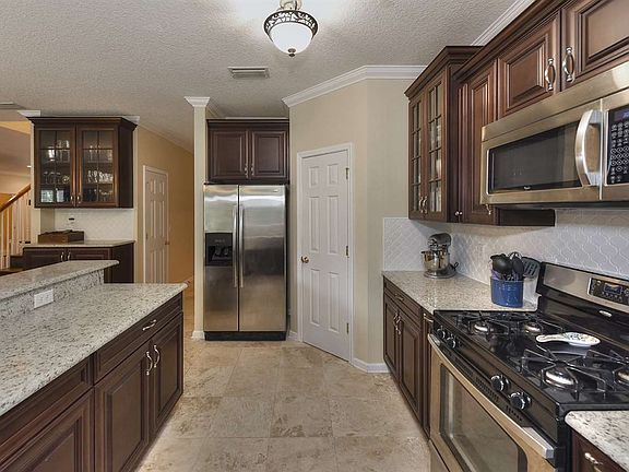 New Price! Beautifully updated home on oversized preserve lot in Heritage Landing. Downstairs, a spacious open floor plan awaits; including a gourmet kitchen with stainless steel appliances, gas oven and cooktop, granite countertops, and a matching built in coffee bar. The travertine tile continues into the laundry room - also with granite counters, built in sink and additional cabinetry. Cherry bamboo wood floors add extra warmth to the downstairs entertainment space, flowing through living, formal dining and a large office or play area with built in shelving. The large master bedroom overlooks the preserve, and the upgrades continue with travertine tile and granite countertops in the ensuite complete with his and her closets. Four additional sizeable bedrooms provide plenty of space for family or guests. Located on a quiet, cul-de-sac street in the popular Heritage Landing. The community offers resort-style surroundings and amenities, including athletic courts and fields, a clubhouse, a pool with water park-like features, and much more. Beautiful nature, excellent schools, easy access to I-95. Come see why so many families are moving to Northwest St. Johns County. Measurements are estimates - Buyer to verify.