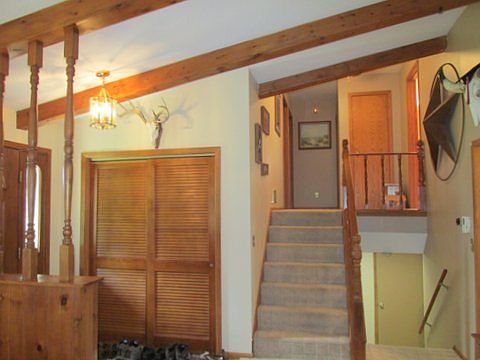 Scenic location with a well maintained 3 bedroom, 2 bath home. Double sided fireplace, open staircase, vault & bow window. LL family room & storage space.1 car att. garage plus 48 x 32 det. garage/shop, wired 220, includes air compressor & work bench. Storage loft and overhead door. Plus storage shed, and pole shed currently used for horses with water & electric. Additional 14.29 acres available! Room Name Lvl L W Room Remarks Kitchen Main island/bar Dining Room Main double sided fireplace/combined kitchen Living Room Main vault, wood fireplace, bow window Master Bedroom Upper large bedroom Bath Upper master 3/4 bath Bedroom 2 Upper good sized bedroom with closet Bath full bath-updated Laundry Room Lower exterior exit door to back yard Family Room Basement Recently updated Bedroom 3 Basement Storage Room Basement Utility Room Basement Amenities - Interior:Bow/Bay Window; Cable; Ceiling Fan(s); Ceramic Tile; Eat-in Kitchen; Kitchen Center Islnd; Kitchen Vent; Kitchen Window; Open Staircase; Vaulted Ceilings; Washer/Dryer Hkups Amenities - Exterior:Brick/Stone Accent; Driveway - Gravel; Garage Door Opener; RV