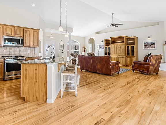 Welcome to 1253 Sunrise Drive, nestled in the desirable Meadows Subdivision of Delta, Colorado. This beautifully maintained, one-owner home offers 2,103 square feet of comfortable living space on a generous half-acre lot. Built in 2008, it combines quality craftsmanship with thoughtful design. Step inside to find rich hardwood floors, granite countertops, and a neutral color palette that creates a warm, move-in-ready atmosphere. The open-concept living area, centered around a cozy fireplace, seamlessly blends comfort and functionality—perfect for both everyday living and entertaining. Enjoy the privacy of a split-bedroom floor plan. The spacious primary suite features a walk-in closet, a luxurious 5-piece bath, and direct access to the back patio. Two additional bedrooms offer ample space and storage, with a full bathroom conveniently situated between them. A formal dining room adds a touch of elegance, ideal for hosting gatherings and special occasions. Step outside to a serene backyard retreat shaded by mature trees, offering both privacy and a peaceful setting. Whether you're relaxing on the covered patio or enjoying the additional pergola area, it’s the perfect spot for barbecues or quiet mornings. Bonus: a heated workshop provides extra space for hobbies, storage, or your next project. Come experience the warmth and comfort of 1253 Sunrise Drive—you may just fall in love.