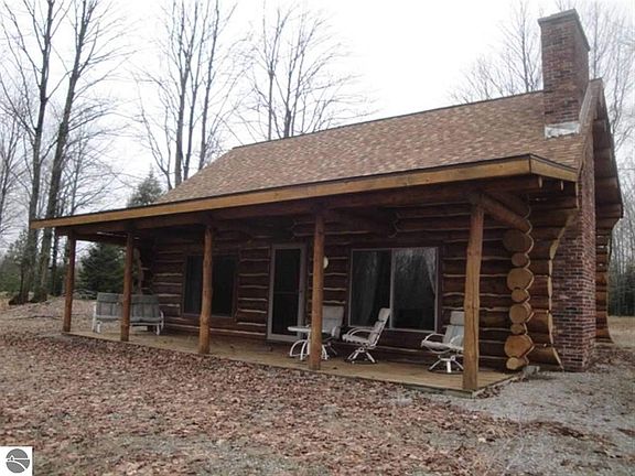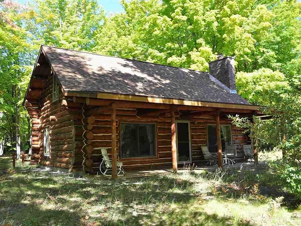 LOG CABIN NESTLED IN 177 ACRES! Gorgeous property! Slightly rolling, open, hardwoods, small stream meanders through the property to Loon Lake on State land to the south! Dense evergreens for the deer, soft woods for bird hunting, some open rolling - huge variety of terrain and forest!! Take long walks to enjoy wildlife! Ideal up north getaway for the family - Rustic log cabin, open floor plan, large 12 x 32 loft that sleeps several! Huge log beams, brick fireplace, bath and modern conveniences! Covered porch for lazy evenings! Simply ideal! Plenty of room for the kids to enjoy the outdoors, trails throughout the property! Includes two-car garage for RV and hunting equipment storage!