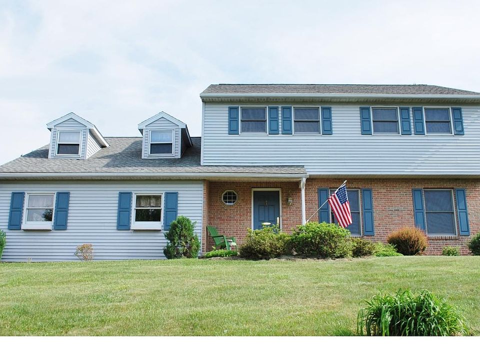 WOW!! What a view from this pristine home situated on just under 4 acres of land that looks out over miles of rolling hills. Enjoy one of the best views of Berks County. Own your own piece of paradise, as you sit on your HUGE paterned concrete patio and entertain guests or just relax and enjoy the view. A professionally installed Koi pond adds to the tranquility of the outdoor space. The kitchen has been updated with upscale granite counters and tiled floors. The large family room has a handcrafted custom fireplace and a vaulted ceiling with sky lights. The dining and living room have hardwood floors and are accented with crown molding. The basement adds an additonal 500 sq. ft. (included n the total sf) and includes a custom wet bar. The master suite has plenty of room for a king bed, has a large walk-in closet, double sink with granite, and a new step-in shower with glass door and beautiful tile work. The second floor has newly installed hardwood floors troughout. A high efficiency heater and central air unit have also been updated. This is the home you have been waiting for!