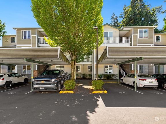 **VA Assumable loan available at 2.375%**Welcome to this beautifully updated 2 bed/2 bath/944 squ ft gem with an open layout, cozy gas fireplace & abundant natural light. Enjoy this top-floor unit's private balcony & storage space, while taking in the quiet scenery. The well laid out kitchen boasts a gas range w/ample storage & counter space. Primary bedroom has an updated en suite w/spa-like feel. Dedicated laundry room w/additional storage offers convenience & space! Recent HOA updates include roof/plumbing/insulation. The future Link Light Rail is less than 1/4 mile away, ideal for commuters! Close to Boeing, Hwy 99, & I-5, this is the perfect blend of comfort & connectivity. Don't miss out on this prime location and pristine property!