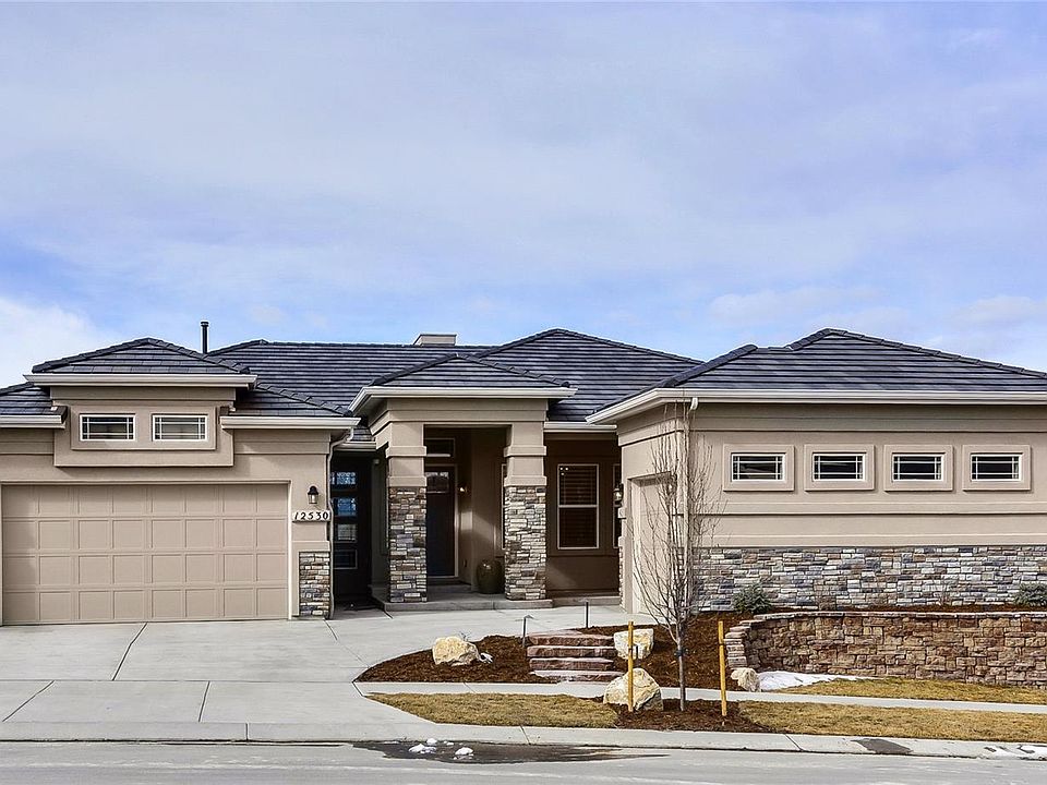Why Wait for New! Gorgeous 6 month old Ranch Style Home in sought after Flying Horse with Breathtaking Views of Pikes Peak and The AFA. Stunning both inside and out, this home is a blend of Main Level Living, with Casual Entertaining for a Great Family Home. Upgraded finishes the Gourmet Kitchen features Jenn Air Stainless Appliances, Sub Zero Cabinet Finish Refrigerator, Double Ovens, Drawer Microwave, Dishwasher and Six Burner Gas Stove. The Butlers Pantry includes a Sink and Extra Dishwasher. Pikes Peak Framed by Expansive Windows with Hunter Douglas Blinds throughout. Cosmo Fireplace in Living Room and Walkout to Covered Deck with Gas Heater. Water Popped Hardwood Floors on Main Level. Phenomenal Sound System for the Whole House to include Theater Surround Sound, outdoor Speakers.