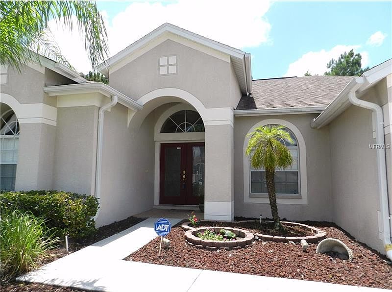 AWC - Taking Backup Offers Beautiful community - Rosewood of River Ridge is with-in walking distance of River Ridge Middle and High School. 4 Bedroom, Split Plan lay-out is light and bright, with most rooms opening to a Huge screened lanai, complete with pavers and spa. Huge Master bedroom and bathroom (separate shower, and soaking tub) has sliders to your private, tranquil outside space. 3 additional rooms are on the other side, one of which also opens to the lanai and a 2nd bathroom which could be used as a pool bathroom. The Kitchen has a wonderful flow, breakfast bar, and lots of storage space. Inside Utility, and 2 garage for all the toys. New carpet in 2 bedrooms, tile and laminate through out the rest of the home. Rosewood is part of the River Ridge Family of Communities, offering a social membership for the country club, pool, golf and amenities.