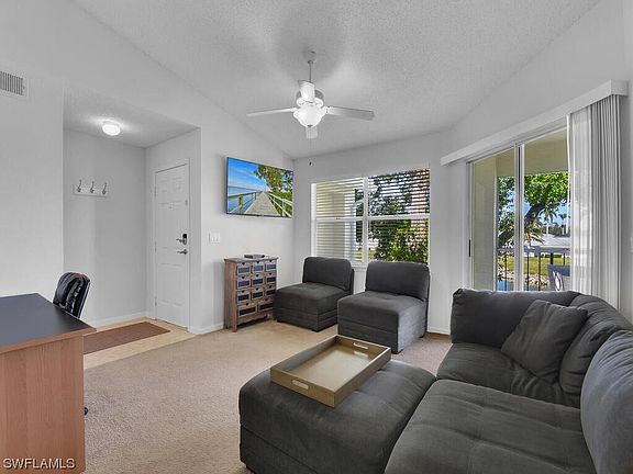 Only lakefront for sale right now!!! Come see this one bedroom and one bath second floor condo overlooking the lake with a fountain and watch the gorgeous sunsets and ducks and birds in this relaxing environment. Located on the second story with vaulted ceilings and an open floor plan. This condo comes furnished with all appliances and washer and dryer located inside the residence for your convenience. Large walk-in closet in the master with private sliders out to screened patio. Shower/tub combo in master with a separate water closet. This unit is move in ready and will not last long with this amazing view. It is a short walk to enjoy all the community amenities. Community has a clubhouse and community room with community pool and spa, library, sauna, fitness center, volleyball, tennis, car wash area and much more. Centrally located in Fort Myers to SW FL International Airport, Beaches, Shopping, Restaurants, Spring Baseball, downtown and much much more. This would make a great primary residence or an investment property with great rental potential.
