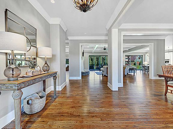 This custom home features an open floor plan with 10' ceilings, 8' solid doors and hardwood floors on the main level. Cozy up in front of the stone fireplace while viewing the backyard through a wall of slider doors. Enjoy a main level owners suite with a walk-in closet. The kitchen features a stainless steel gas range, double oven, and dishwasher. The oversized island has storage on both sides, a drawer microwave and beverage cooler - perfect for entertaining! The second level offers 3 bedrooms, each with a private bath, a bonus room and office/tv room that can easily be converted into a 5th bedroom. Need storage? This home has two oversized walk-in storage areas. The two covered porches and backyard are perfect for parties or relaxing evenings with family and friends.
