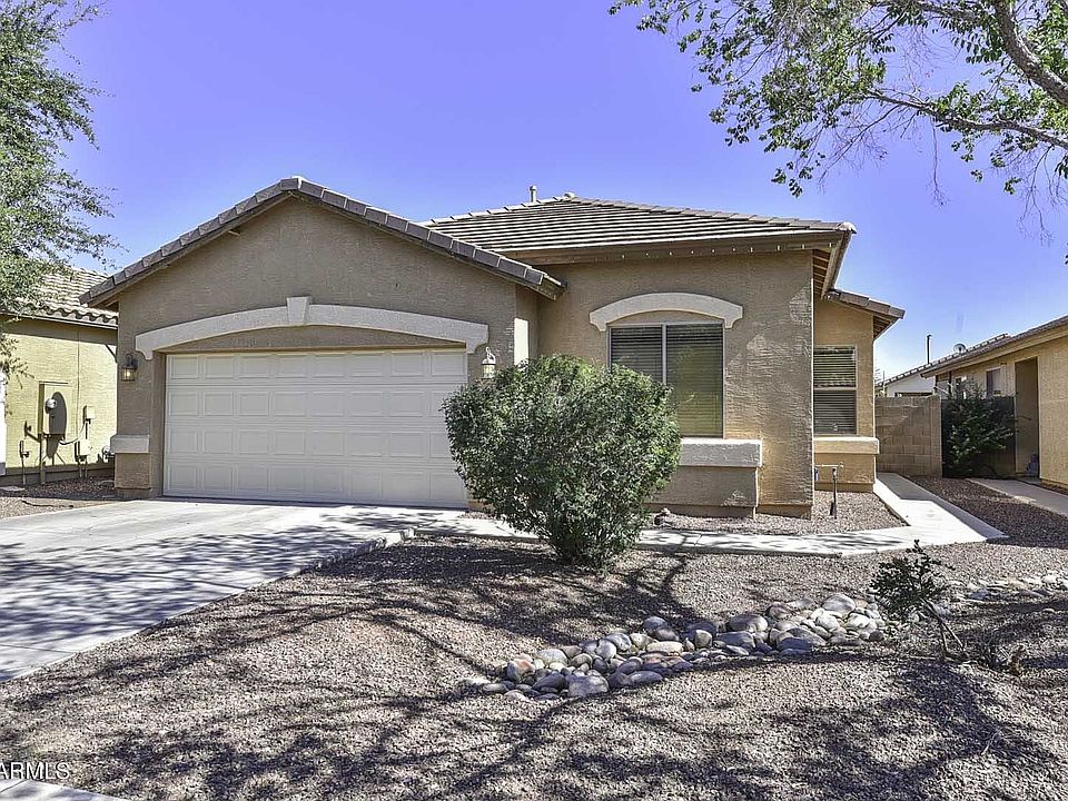 This beautifully updated home, situated on a south- facing lot will captivate you the moment you enter with a spacious great room made for entertaining (HD projector & screen convey!) open to a recently upgraded kitchen that features granite countertops, stainless steel appliances and lots of cabinets! Other recent upgrades throughout the home include fresh paint, new flooring, new kitchen and bathroom faucets, and smart features. This highly sought-after split floorplan offers an owner's retreat that features a roomy walk-in closet and a private en-suite with granite countertop. Patio access from the great room allows for open entertaining from inside and extends out to a large backyard with a custom gas firepit surrounded by pavers and low maintenance landscape. Located within a