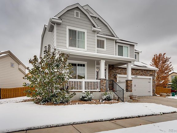 Welcome to popular Turnberry neighborhood! Beautiful light & bright 2 story GEM w/ southern exposure. Wonderful open floor plan & nice upgrades throughout (see list). Upstairs offers 4 beds + bonus loft / office space. Nicely finished basement w/ 5th bed room & more. Home is located in QUIET cul-de-sac on HUGE fenced in corner lot w/ oversized patio including pergola. Two parks & pool within walking distance. Easy commute to DIA & Denver. 3 CAR garage too!