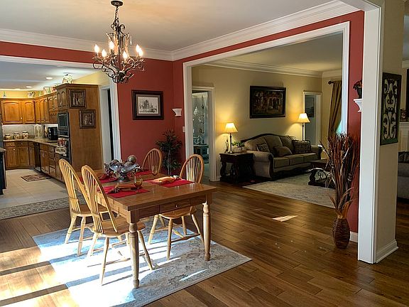 This gorgeous ranch with walk-out basement is situated on a landscaped wooded lot in a desirable McCutchanville subdivision. This open floor plan offers a great room with hardwood flooring and a fireplace that is open to the dining room and kitchen with crown molding making it perfect for entertaining. The kitchen with custom cabinets, planning desk, pantry and large serving bar has been updated with granite countertops and is perfect for any cook. Family and friends will gather in the spacious main level family room with walls of windows providing views of the extensive landscaping and mature trees. The master suite with vaulted ceiling has an updated bath with granite counter tops updated fixtures, whirlpool tub and walk-in shower. The main level also offers a second bedroom with full bath and an office with French doors and built-ins that could be used as a third bedroom perfect for guests. Finishing the main level is a guest bath and large laundry. The lower level with full bath offers many possibilities: bedroom, recreation room, home theater, office or a private suite for guests or teens. The oversize 2 car side load garage offers an abundance of storage and workshop area with cabinetry. This is immaculate home is situated on a gorgeous landscaped lot with mature trees and abundant parking. Located close to great schools and shopping.