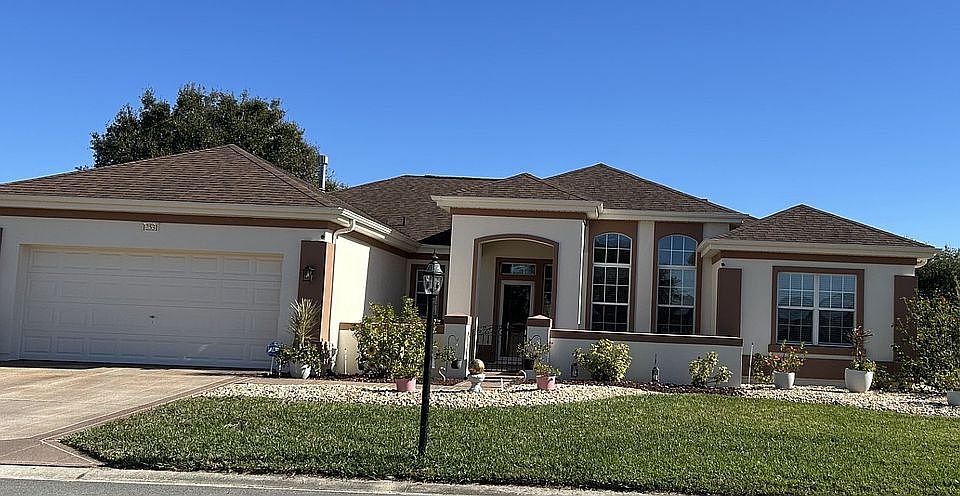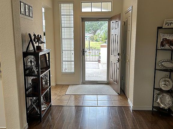 When we walk into this home it always brings a smile. The large windows bring a lot of natural lighting in and the open french doors to the lanai brings the outside in. The 10 ft ceilings bring additional openness to the already open floor plan. The yard is large enough that if you wanted to add a pool, there is plenty of room to do so. The location is the best, close to the fitness center and the softball field. The Del Webb community is very warm and welcoming.