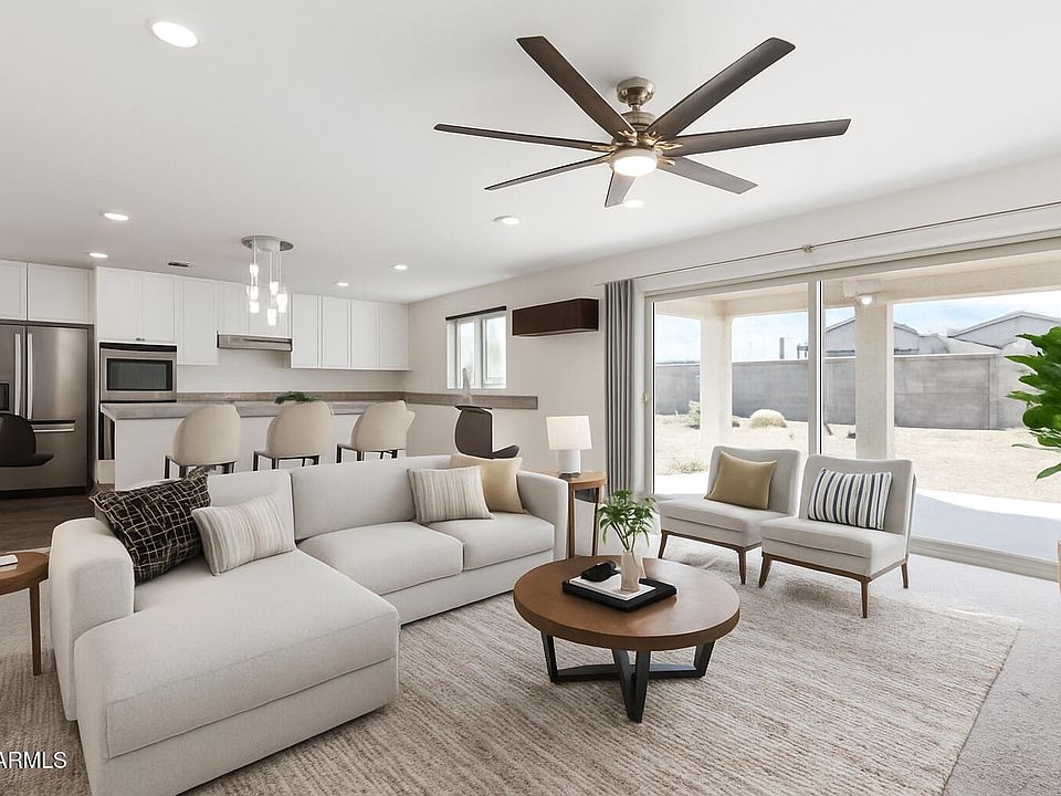 MOTIVATED SELLER! Freshly Painted & New Carpet! The perfect family home- Beautiful, well maintained 3 bedroom + den. Upstairs has the bedrooms and features a spacious loft. This home comes with many upgrades in a desirable floor plan. Designed with upgrades throughout, including a gourmet kitchen with quartz countertops and stainless steel appliances. The backyard is perfect for entertaining with Bluetooth outdoor speakers and a motorized projector screen for movie nights under the stars. Smart-home features include Ring security, Aladdin Connect garage control, and Ecobee smart thermostat—all managed through one easy-to-use app. Priced right and move-in ready! Don't miss this rare opportunity to own a feature-rich, move-in ready home just minutes from shopping, schools, and the Loop 101.