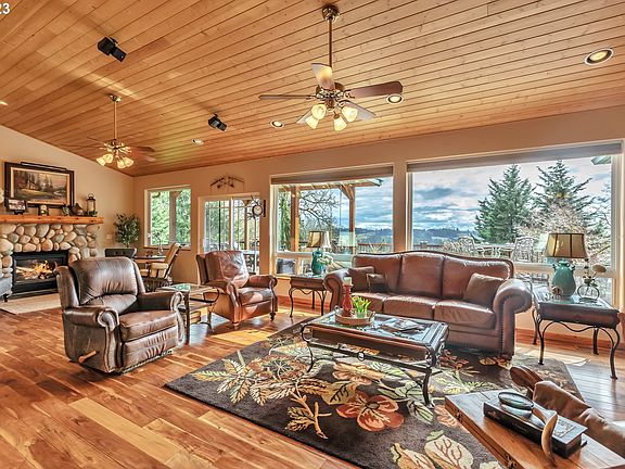Amazing 25.58-acre private, secluded estate at the edge of the city. So much to see here. This Lovely 4 bed, 3 1/2 bath custom lodge style home has a gorgeous kitchen with a large island, new quartz countertops, new gas cooktop, tons of storage, a cozy sitting area with a river rock fireplace, and open concept floor plan with a master on the main. The master bedroom and bath have been updated for that spa-like feel with new luxury vinyl plank flooring, fresh paint, a free-standing soaker tub, quartz countertops, and tile & glass shower. Enjoy the fantastic territorial mountain views from the expansive deck off the main living space and a deck off the master. The main floor consists of Primary Bedroom, 2 additional bedrooms, living room, dining room, kitchen, 2 and 1/2 baths, mud room, and a large laundry room. The lower floor has a large family room, bedroom, full bath, outside entrance, and patio. Shop is 40x60 with concrete floors, half bath, roll up door, and non-permitted guest quarters upstairs (2 bed, 1 bath). 36x24 barn w/ tack room, and 3 stalls, and fenced pasture on the central upper portion of the property (approximately 7 acres). Lower portion used for riding trails and recreational purposes and contains power lines with an easement (rarely used) for access by Bonneville.