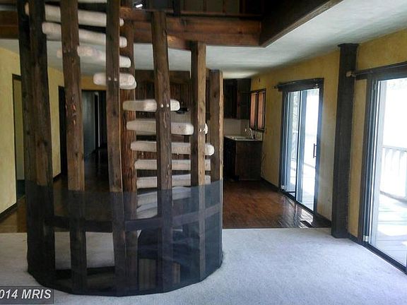 Unique home nestled in the trees. Rappahannock River marsh front. Farm can be made zoned agriculture. Loft with circular staircasepole to 1st floor,screened deck on 2 sides of house w/multiple sliding glass doors. 4 BR, 3 BA. Lots of woods. MBR opens todeck. Drive under 2+ car garage