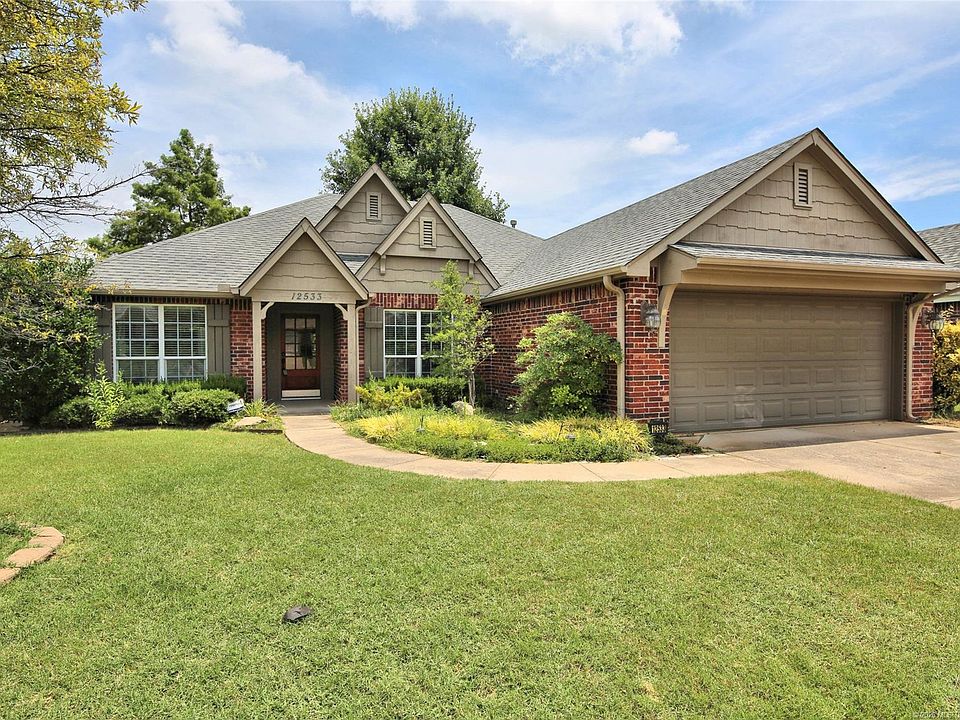 Located near the neighborhood pool and parks/ponds, this ranch-style home is so quaint! The spacious kitchen with a pantry opens into the great room for the perfect open concept. The extra large dining room is great for large gatherings & entertaining. Beautiful wood floors throughout the living areas. The backyard has an extended covered patio and a pergola.
