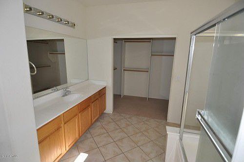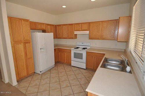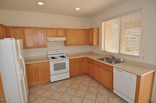 Incredible Litchfield Park home and you can move in immediately. Freshly painted, new flooring throughout, stainless steel appliances. Generous 3-bedroom/2-bath home with large great room , eat-in kitchen with oak cabinets. Spacious master bedroom with large master bath and walk-in closet. Security front screen door and window treatments throughout, including shutters and blinds. Covered patio and open flagstone patio in back. You will like this home. Prospective tenant to all verify schools