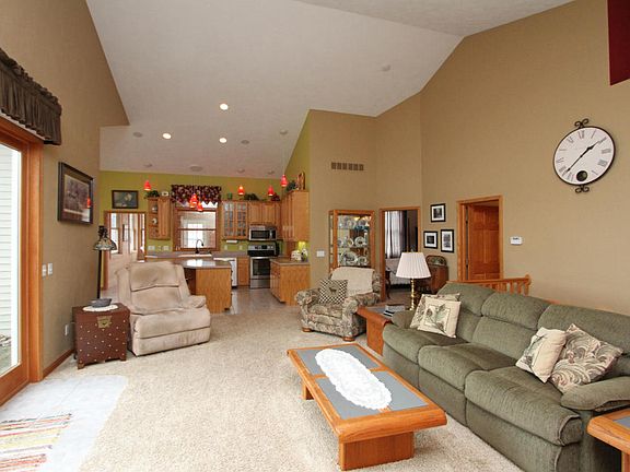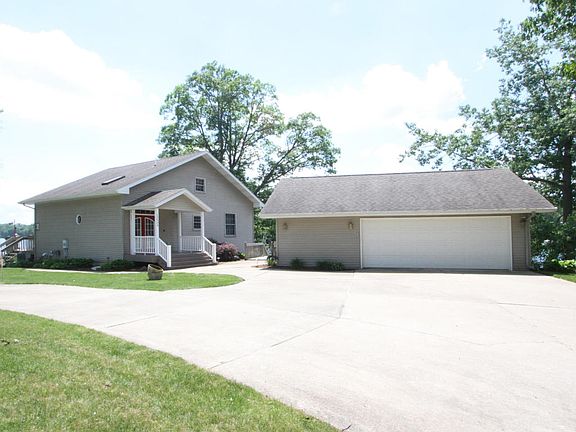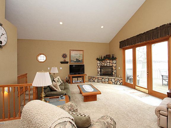 This amazing property has views of Pine Lake #2 from almost every room including the garage! With over 200' of sandy beach front, this custom built home shows pride of ownership inside and out. Main floor offers a large living room featuring vaulted ceilings and a gas fireplace. Kitchen offers Washburn custom cabinets, large island, stainless appliances and walk-in pantry. Windows surround the dining area providing lake views and natural light. This open concept living space offers the perfect entertaining space for lake living. Bedroom features double closets and a loft area great for additional living space or storage. The full bath finishes the main floor. Lower walk out level features a second living room, large bedroom, an office or additional bedroom, full bath and utility