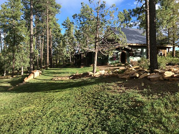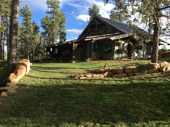 Bi level Craftsman Style home with upstairs guest apartment nestled amongst the pines on 3 acres. Lovely landscaped courtyard and Glass/rocked Greenhouse!