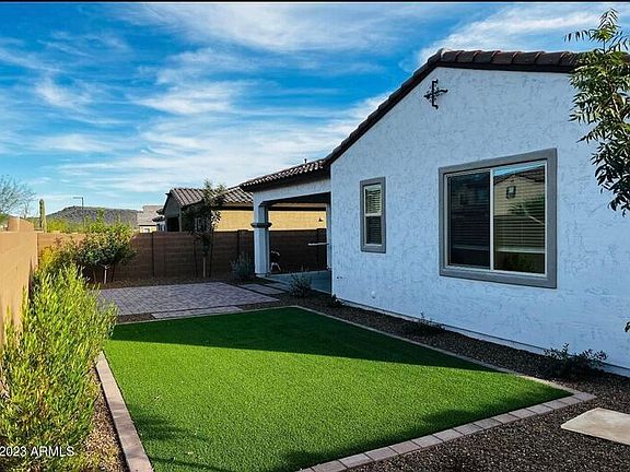 1000 off 1st Month rent 4 Bedroom Plus Den and 3-car Garage in Mystic 1,000.00 OFF 1st Month rent if rented by November 1st South facing 4 bedrooms, Den, Great Room 2.5 Baths and 3 Car Tandem Garage in Mystic at Lake Pleasant Height. Lennar's Juniper model 4584 with 10-foot ceilings and 8-foot doors is a single-story house offering 2468 s.f. of living space with Interior features including all stainless steel appliances, washer and dryer, ceiling fans, window coverings, 18x18 Tile and Berkley Place Carpeting in the bedrooms. Recently updated with New Paint throughout and New luxury vinyl plank in the great room and den. The Spacious kitchen features an Island with a Large Breakfast Bar, Granite Countertops, Sonoma Cherry Slate cabinets with Stainless Steel Refrigerator, Dishwasher, Microwave, and Gas Stove. The master bedroom includes a private attached bathroom with dual sinks, separate shower and an oversized walk-in closet. Extended covered patio, block fenced back yard and low-maintenance, low water use desert scape in both the front and back yards. Backyard landscaping features artificial turf, paver stones, shrubs and trees for shade and privacy. Garage is finished and has a water softener system. Within walking distance to the community clubhouse, swimming pool, picnic area and basketball court. Nearby Lake Pleasant offers recreational opportunities. Enjoy the beautiful mountain views with saguaros in the nearby Sonoran Desert and stunning Arizona sunsets. 650 Credit Score or higher required Pet accepted upon approval. $35 additional rent per month + $300 non-refundable pet fee. This home is a non-smoking or vape inside the house or the garage area. Application fee is $40 per person over 18. 2% admin fee is charged on top of monthly rent $2425 x 2% = $48.50= $2473.50 Monthly for 1 year lease (not including pet fee). Refundable security deposit is $2595. Hurry and setup a tour. 1,000.00 OFF 1st Month rent if rented by November 1st Contact us to schedule a showing.