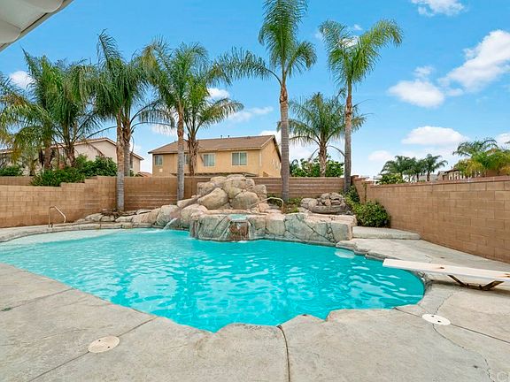 Perched at the end of cul-de-sac and on a premium 11,000-square foot lot, this ready to move in 5-bedroom home is highlighted by a rock-formation pool and spa and full RV parking. Entertaining this summer will be a breeze with the massive pool and spa--featuring a slide and jumping board, a built-in BBQ, a California-style room for socializing, vast concreted areas and wall-mounted sound speakers. By having a free-and-clear solar panel system, this home will give you the peace of mind of having no, or close-no monthly electrical bills. This exceptional floor plan features a double-sided fireplace in the living and family room, a downstairs bedroom with a full bath and a loft in the second floor. It has new interior paint throughout and new plush carpet. Complain no more about the size of your kitchen; this massive kitchen boasts cabinetry galore, a center island, a breakfast bar and a walk-in pantry. Full openness to the kitchen defines the spacious family room, which features wall-mounted sounds speakers and oversized tile floors that expand into the kitchen and the halls. The suite-style master bedroom features a lounge area, a bedroom-sized walk-in closet and an en-suite bath, which features a separate tub and shower. Other amenities of this fine home include an intercom system throughout the house, direct access to the split 3-car garage and no homeowner's association. This home is within 1 mile of Silver Lakes sports complex and shopping--including Eastvale Gateway.