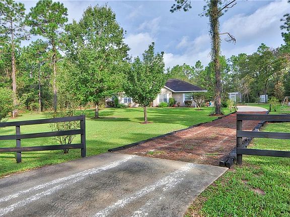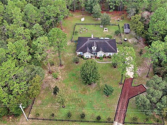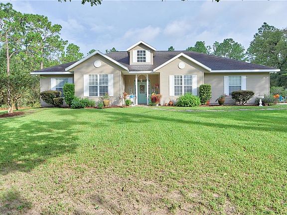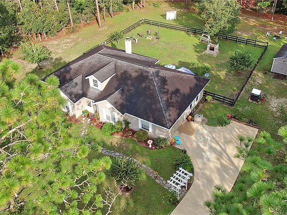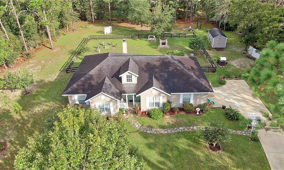 Welcome home to this well maintained and loved 3/2/2 Custom Built 2004 Home with 2286 living square feet and a total of 2923 square feet under roof on 1.14 acres fully fenced-in, in Rolling Hills Subdivision-Ocala, Florida. This home has so many features and upgrades. Beautiful landscaping with trees and cleared land along with the detailed landscaping back up to a reservoir for added privacy. Nice size storage Shed, well house, outdoor BBQ grill, sitting area to enjoy your morning coffee enjoying the views and tranquility. Tons of privacy as shown in areal pictures. Property is fenced in with wood fencing and a front gate. Long driveway with plenty of space for friends and family to park. Spacious side 2 car garage. Garage has epoxy flooring. Open concept kitchen overlooking a large living room. Spacious kitchen with upgraded granite counter tops and subway tile backsplash. Upgraded wood cabinets with crown molding. Plenty of cabinets and countertop space. Home includes an overhead microwave, range, side by side fridge, dishwasher. $1900 Washer and dryer only a month old with extended 3 year warranty. Guest bathroom recently remodeled. Upgraded crown molding throughout the home, AC replaced. Upgraded stone wood burning fireplace with mantle , ceiling fans throughout home. Guest bedroom features a walk in closet. Spacious master bedroom with a large walk in closet. spacious eat in kitchen with a separate dining room. As a big bonus there is also a study/den which would be perfect for those who work remotely from home. Close to Rainbow Springs, shopping, amenities, and more. Home has so many features to mention. Request your showing today.