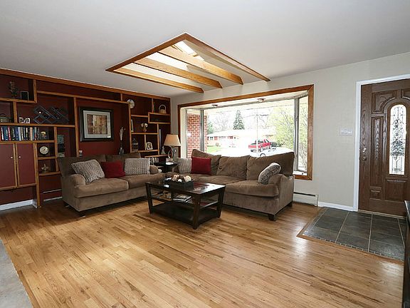 Situated on a large corner lot this remodeled ranch-style home offers main level living, cozy and efficient hot-water heat-and pride of ownership is everywhere. You'll find gleaming hardwoods and a bright, open concept that showcases a fantastic wood-burning fireplace & beautiful new kitchen with stainless appliances, slab granite and a large island. The list of improvements is too long to list, but some include a fully remodeled hall bath, newer roof and gutters, garage door and belt-drive opener, 6-panel doors, 2009 Dunkirk cast iron boiler, and newer doors and windows (including 'in-window' blinds in the sliding glass door). Full basement is partially finished and offers a terrific second living area with a gas fireplace and a huge, bright laundry area. Plenty of storage space and loads of potential for finishing the rest of the space! Plus extra off-street parking in 2nd parking area.