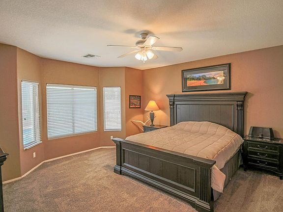 Welcome home to this beautiful Fulton home located in Wigwam Creek. Relax in your refreshing pool along with your fully landscaped back yard with a north exposure. Upgrades in this 3 bed, 2 bath home include high ceilings, carpet & tile floors, bay windows, ceiling fans, kitchen island, breakfast bar, custom interior paint, pantry, front decorative security door, newer hot water tank, covered front porch, rear covered patio, view fencing, and more. Located near shopping, dining, schools, medical facilities, golf courses, and more. The Arizona Cardinals stadium, Coyotes arena, and Westgate are just minutes away.