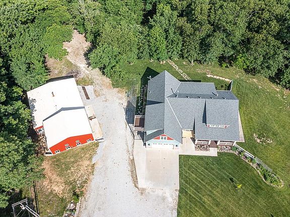 GORGEOUS RANCH HOME ON 10 PARK-LIKE WOODED ACRES WITH A TRANQUIL STOCKED POND! This custom-built home features an open floor plan with hardwood floors in the main living areas, creating a warm and inviting atmosphere. The great room boasts a cozy fireplace and built-ins, while the large kitchen includes granite counters and a center island, perfect for entertaining. The main floor master suite offers a private bath with a soaking tub, shower, double vanities, and a walk-through master closet leading to the laundry room. Additionally, there are two more bedrooms on the main level. Upstairs, you'll find a spacious bedroom with a deck overlooking the scenic property. The walkout basement is partially finished, featuring a family room and full bath. Built with energy efficiency in mind, this home has 2x6 exterior walls, smart siding, and 9' walls on both the main floor and basement. Enjoy outdoor living with a covered front porch and a covered deck. The property includes a 40x40 barn with an attached 32x24 barn, spray foam insulation, a wood furnace, and 50 amp hookups for RVs. Explore the wooded property via 4x4 ranger trails leading to the pond and stream, offering a private and secluded retreat. The backyard is an oasis, complete with a luxury chicken coop and run, a sprinkler system, a backyard firepit, and blackberry bushes. Additionally, there is a large flower and rock garden, and honey bees that provide ag classification. This home offers a perfect blend of comfort, convenience, and nature.