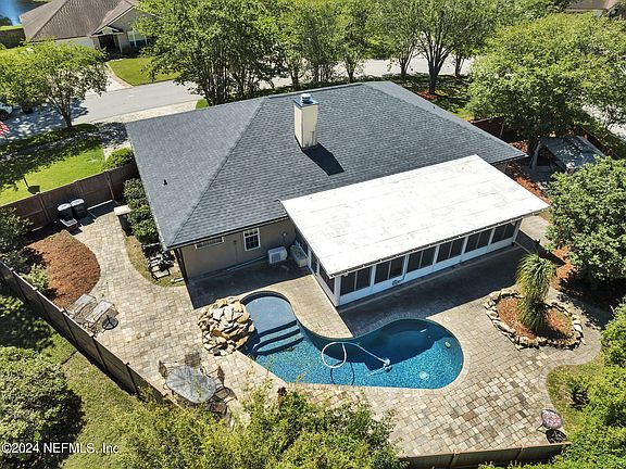 Welcome to this Gorgeous POOL HOME in highly sought after Kensington Community! In addition to the saltwater pool, this home has a Florida Room with fully enclosed glass windows and AC overlooking the backyard oasis. The perfect home for entertaining guests or making memories with family. This BEAUTIFUL & BRIGHT home features split bedrooms, cathedral ceilings, and a large living area w/brick fireplace that opens to formal dining room. Many upgrades include New Roof 2023, HVAC 2022, Wood Floors 2019, New Toilet 2023, updated outlets and carpet in Master bedroom 2024. This updated home is located on a cul-de-sac, with a beautiful private backyard with saltwater pool, pavered deck & large gazebo. Community has great amenities - pool, tennis, soccer, volleyball, lakes & walking trails. And don't miss out on the BEST LOCATION in Jax. Less than 10 minutes to the beach, 15 to downtown & river, 25 North to Jacksonville international airport OR South St. Augustine & only minutes to MAYO clinic.