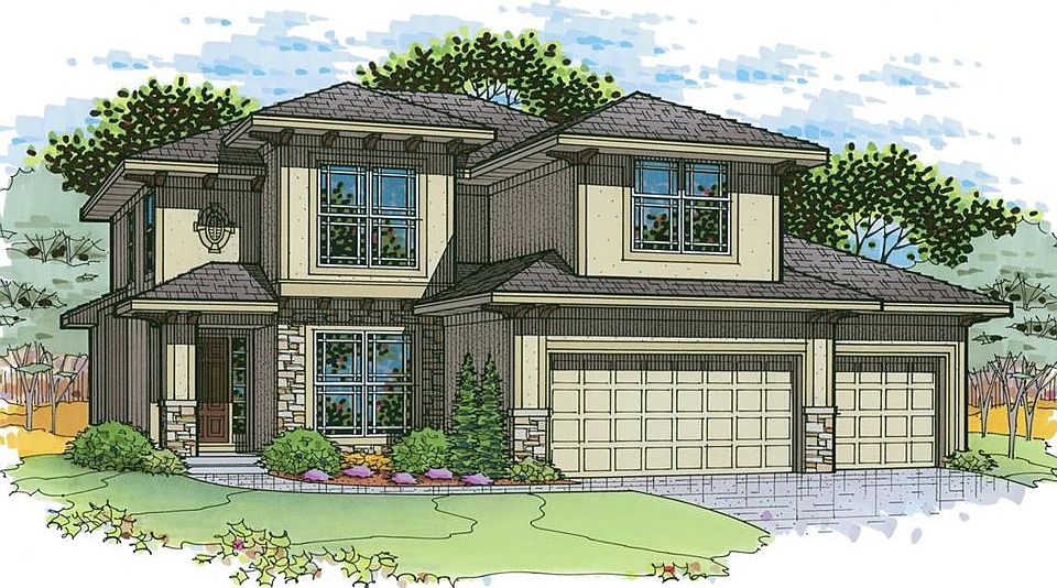 "The Weston" by Rodrock Homes. Elevation 2. Grand Entry Elevation. This home features a ½ Bath, formal Dining Room, Great Room with Stone Front Fireplace, Stained Mantel. Kitchen has Custom Cabinets, Granite Counter Tops, & Stainless Steel Appliances. The Breakfast Room leads out to the Covered Patio. Hardwood Floors in Entry, Great Room, Dining Room, Kitchen, Breakfast Room, & ½ Bath. Stairway has Stained Handrail & Wrought Iron balusters. Upstairs the Master Bedroom has a Vaulted Ceiling. Master Bath features Custom Cabinets, Double Vanities with Cultured Marble Countertops, Soaker Tub, Separate Shower, & Tiled Floors & Shower Surround. 3 additional Bedrooms, a Bathroom with Dual Vanities & Laundry Room complete the Upper Level. Basement Includes 3/4 Bathroom Stub & a Humidifier. PICTURES ARE OF PREVIOUS SPEC HOME, WHICH MAY FEATURE UPGRADES TO SHOW OPTIONAL FEATURES, NOT ACTUAL HOME.