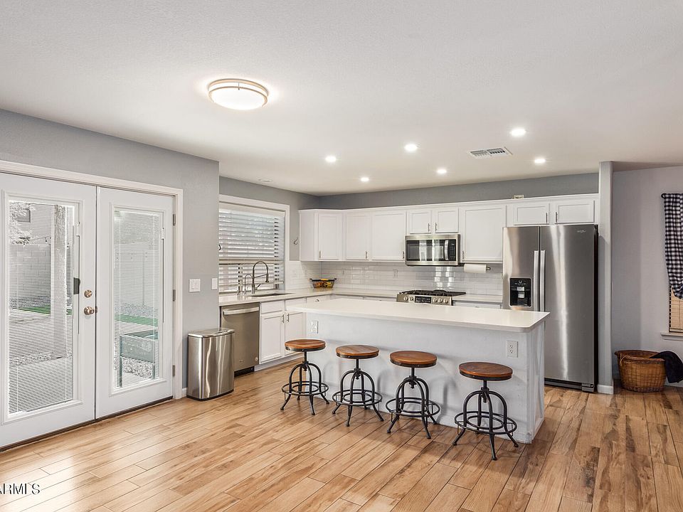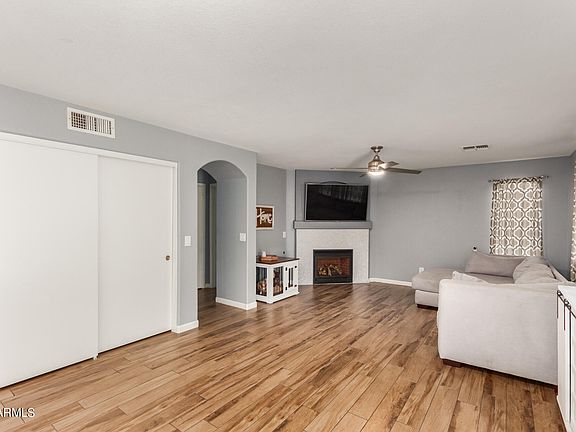 TASTEFULLY UPDATED/opened up. GREAT ROOM format. Wall removed & LARGE ISLAND added. SS APPLIANCES. WHITE QUARTZ COUTERTOPS. WHITE CABINETS. NEW PLANK TILE in all areas, but stairs. NATURAL GAS added for GAS COOKTOP! 4 LARGE BEDROOMS + LOFT. DOUBLE SINKS, TUB & SHOWER. Backyard w/ ARTIFICIAL TURF & PAVER PATIO, easy maintenance & low water use. Front & back COVERED Patios. GAS FIREPLACE w/ awesome MOSAIC SURROUND. LOFT area could be FOR AN OFFICE, CRAFT, WORK OUT Area. CEILING FANS NEWER. Water Heater 2018. NEWER FRENCH DOORS. RING DOORBELL. SHOWS LIKE A MODEL HOME. Garage Floor/WALLS PAINTED. NEWER INT & EXT paint. CLOSE TO SPRING TRAINING/STADIUM. SELLERS ARE COMMITTED TO YOU, BY ASSISTING W/ CLOSING COSTS & REDUCING YOUR PAYMENT W/ INTEREST RATE BUY DOWN!