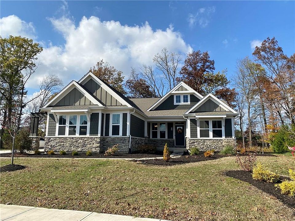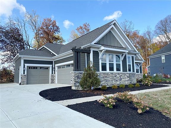 This barely lived in ranch home features a three car garage and basement situated on a beautiful wooded lot! This Fischer home is the Everette model and is only two years old. There is a stone fireplace in the the family room, huge center island in the kitchen with a modern open concept. Piper Glen subdivision includes a community pool, kiddy park, walking trails and beautiful ponds. Easy access to schools, parks, dinning, and entertainment just minutes from Highway I-69 for easy commutes.