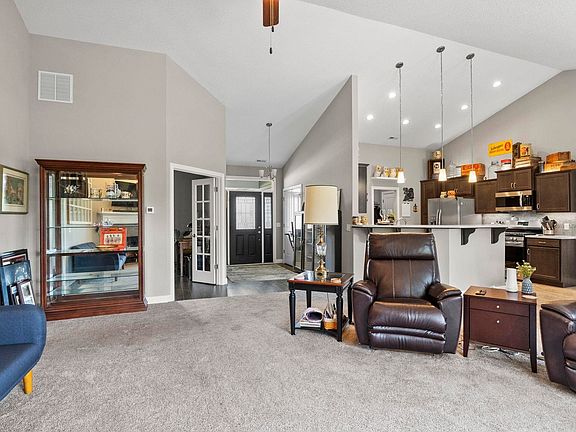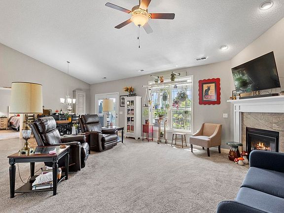 This home has the peaceful setting and timeless look you've been seeking! Located in Palmira Lakes development, this ranch home has a desirable split floor plan and a pond view that looks beautiful in all seasons. The open layout between the kitchen, dining and living room are great for entertaining and you can overflow onto the covered back patio to enjoy the outdoors. Other highlights of this home include the cathedral-ceilings in the foyer and living room as well as corner gas fireplace and multi-purpose den with french doors. The kitchen has dark stained cabinets with crown moulding, quartz counters and custom cabinet lighting. Mudroom provides great storage solutions and connects to the 3-car garage with utility sink. Enjoy the primary suite featuring tray ceiling, custom-tiled walk-in shower, soaker tub, private toilet, and marble dual vanity. A luxurious retreat! Located in the desirable Homestead district, we think you'll love this neighborhood just minutes from the Aboite Trails.
