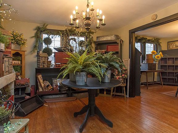 Attractive Cape Cod style structure which had been used as a single family residence up until the sellers moved to expand the zoning to "commercial" and converted the property to accommodate their country retail specialty decorating shop. The sellers are willing to consider plans to convert the house back into a private residence. Kitchen fixtures were removed when changing over to a commercial property but plumbing supply and drain lines were capped just below the floor and can easily be restored to service another kitchen. The structure is in very good condition and also being offered through the Multiple List as a commercial property under cross-referenced multiple list number PAYK134600. The main level has open floor plan with wood floors.....front porch.....and beautiful center staircase to second floor. Upper level offers two bedrooms with tons of closet and storage space and a full bathroom. Lower level is mostly unfinished with a second full bath. The property would require a creative approach between buyers and sellers to rededicate it to a private residence but sellers are willing to be open minded and consider options. Perfect set up for the buyer who wants to live in all (or part) of the residence structure.....and work out of the outbuildings. Property has already been through the zoning change process and is currently tagged with "commercial" zoning privileges.