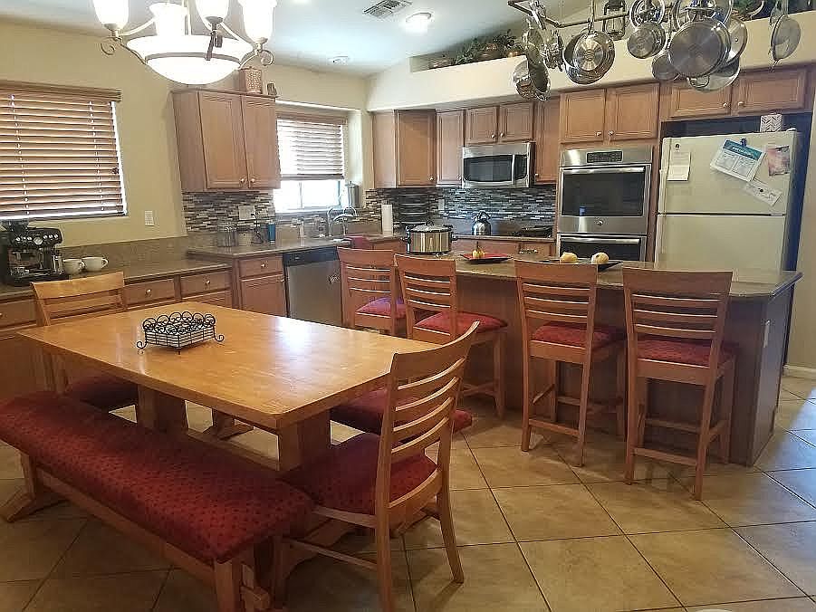 Gorgeous cul-de-sac home on .41 acres. 4 bedrooms, 2 bathrooms, and a beautiful kitchen featuring Patagonia quartzite counters, large island, white shaker cabinets, lots of babinet space, double ovens, and huge walk-in pantry. New flooring throughout. Outside you will find a sparkling pool with water features and a swim up bar, an outdoor cooking bar area with built in bbq, side burner,Big Green Egg smoker, refrigerator , pergolas covering a patio area, above ground spa and pergola. Kitchen, bathrooms and laundry rooms recently remodeled, new A/C, water heater,dishwasher, microwave , new windows, insulated garage doors, and an RV gate. Beautifully landscaped with drip system and artificial turf all on nearly 1/2 an acre. This home also has solar for HUGE energy savings.