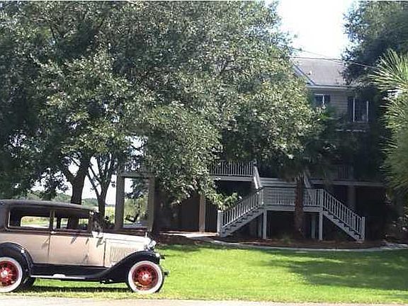 This is ''Lowcountry Living'' on the creek, floating dock, boat lift, outdoor shower. Watch the shorebirds and enjoy grilling on the patio or sitting around the fire pit on cool evenings. Elevated home with spacious garage for 3 cars, workshop and storage. Plantation shutters on the windows. The lot is .82 acres very peaceful and quite. Wide front porch with fans spans the length of the house. Very open floor plan on first floor, 9 ft ceiling with fantastic views from the sunroom. Wide plank Asian Walnut floors on first floor and down the hall on second floor. Large master bedroom, walk in closet and tiled bath with a shower garden tub and dual vanity. Access to deck from sunroom and master bedroom. Great views of the creek and marsh. Surround sound and gas fireplace in living room. The past sale in 2003 was the purchase of the vacant lot only. The Zillow "Zestimate" is based on "all" properties in the area that may not be similar nor on the water. The list price is based on an appraisal from 2010, home values rising, the lot size, upgrades to the home after the appraisal, and homes more similar on the water. The Flood Insurance premium on this home is one of the lowest on the Island, current premium is under $400 a year.
